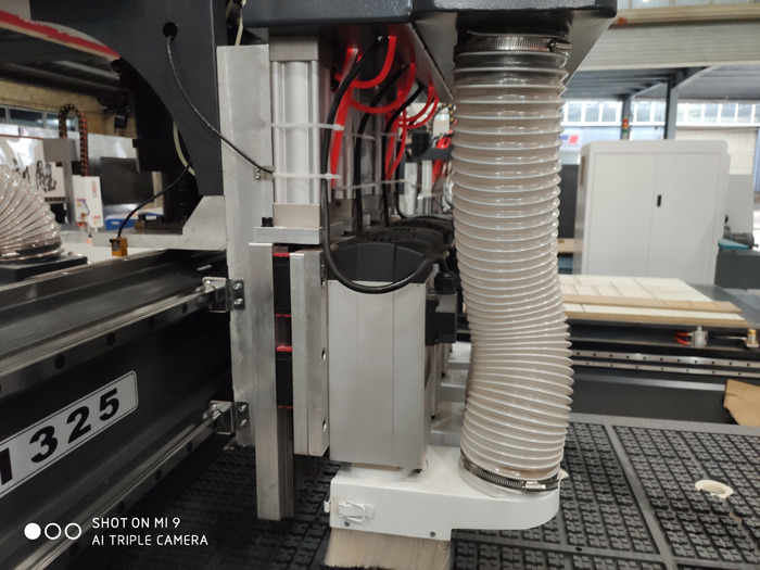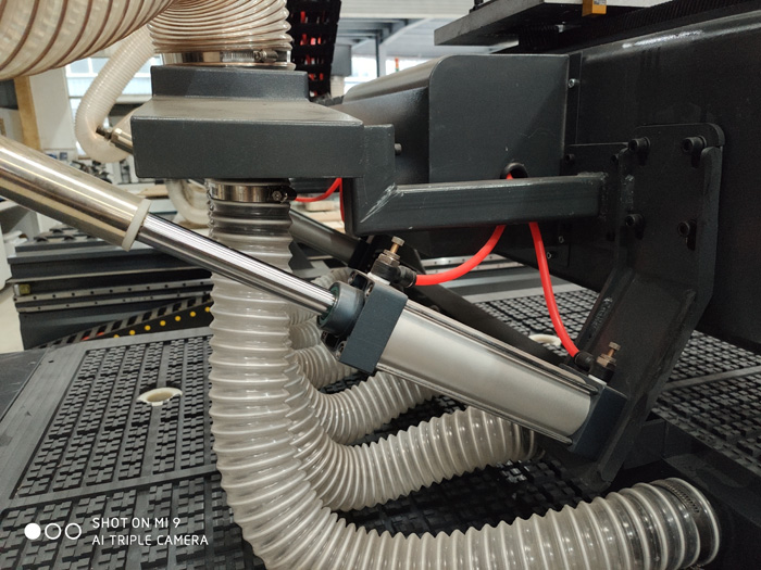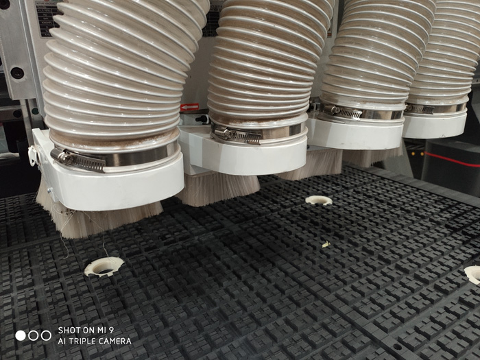 台 面:六分区12大孔真空吸附台面,配备7.5KW 真空泵,吸附强劲不跑板。