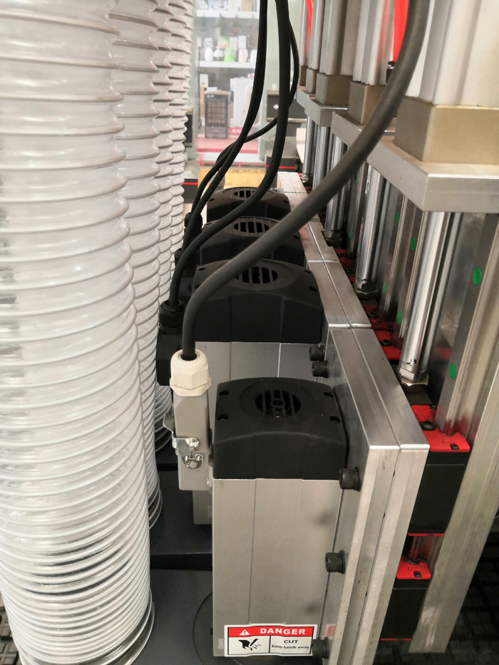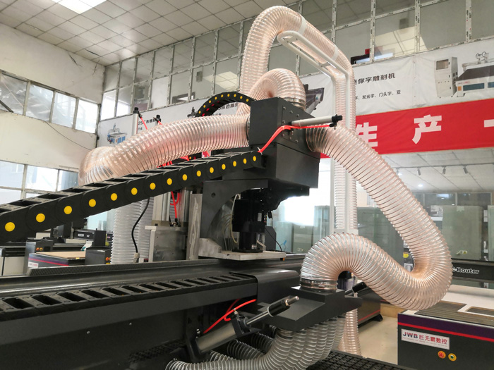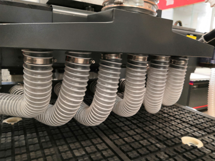 台 面:六分区12大孔真空吸附台面,配备7.5KW 真空泵,吸附强劲不跑板。